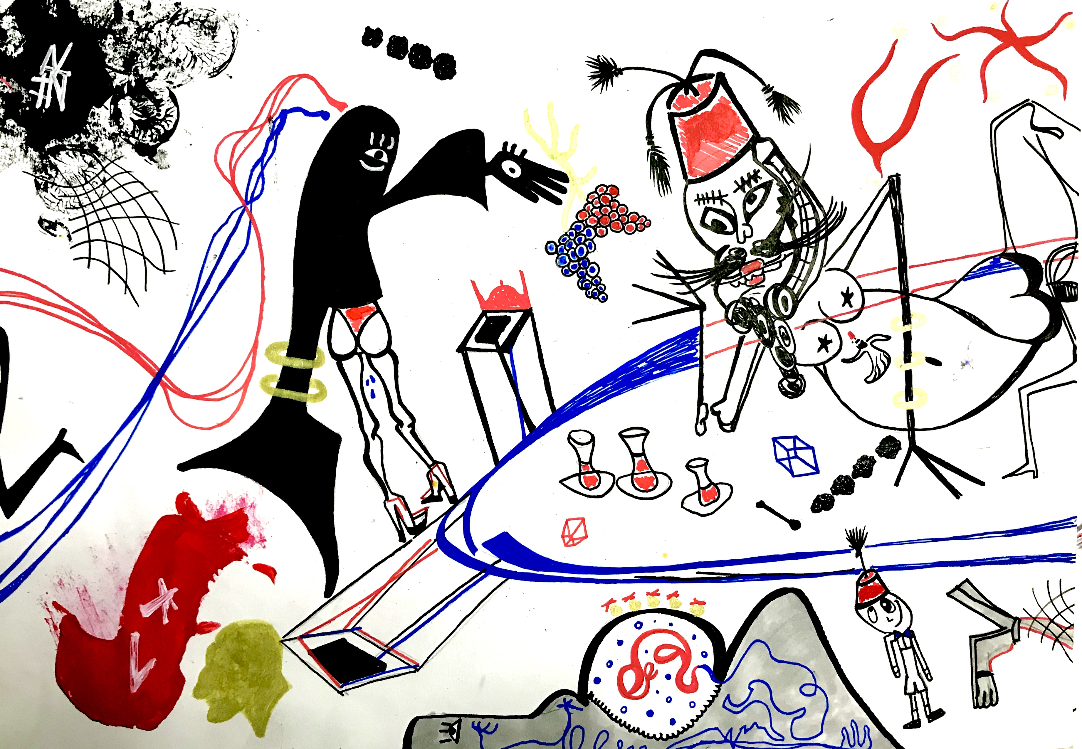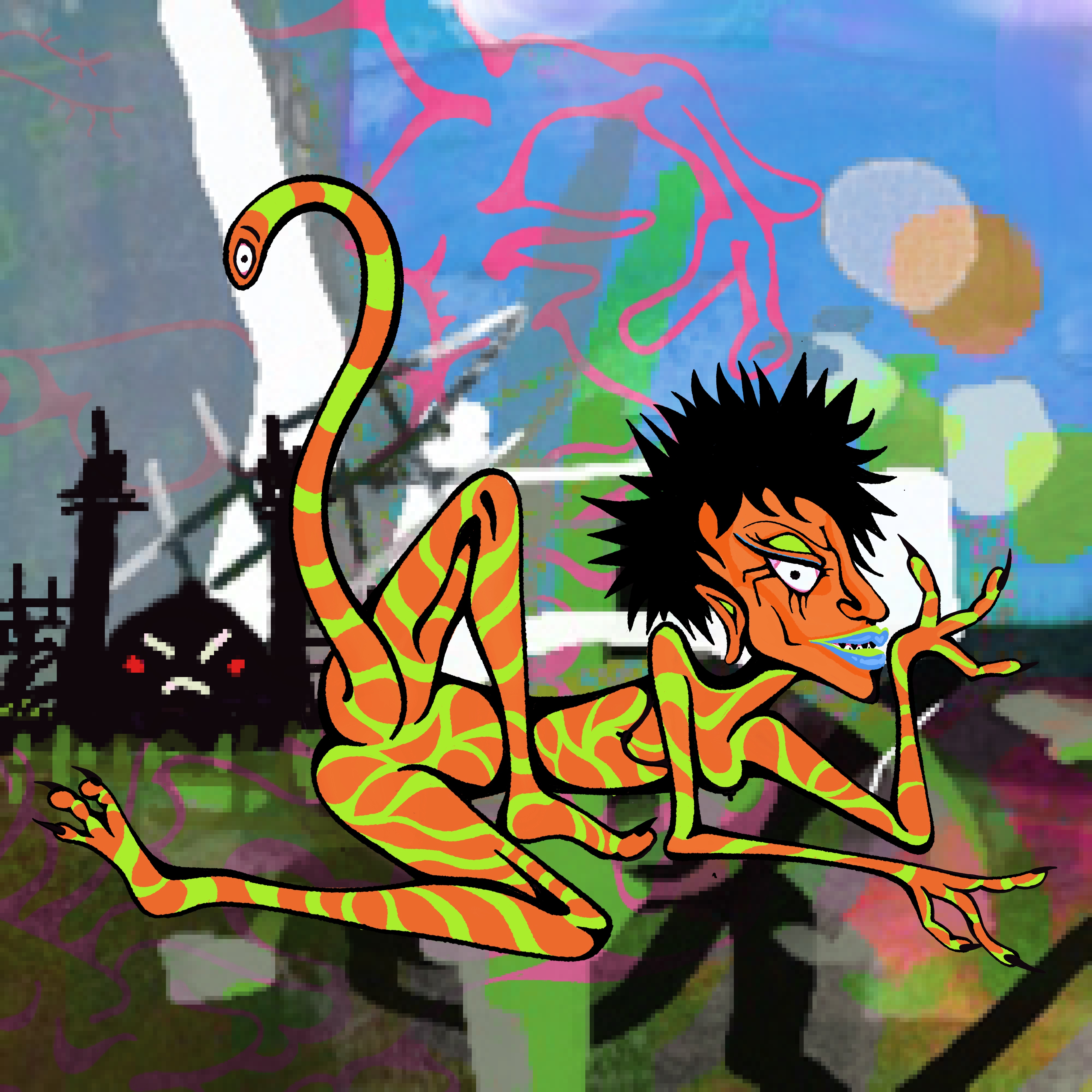 My main hexing items are ink & paint, needles, brushes & spraycans, fruits, veggies, garbage, toys, things&things+morethings, silicongun, on various surfaces. I like my screens, hanging out in the digital land, AI hold my hand. I create visuals, do handpoke tattoos, paint street walls, write essays, fables, and creepy poems. I like to play with random found objects, tear them apart and reconstruct them into toylike creatures with an additional layer of buzz.