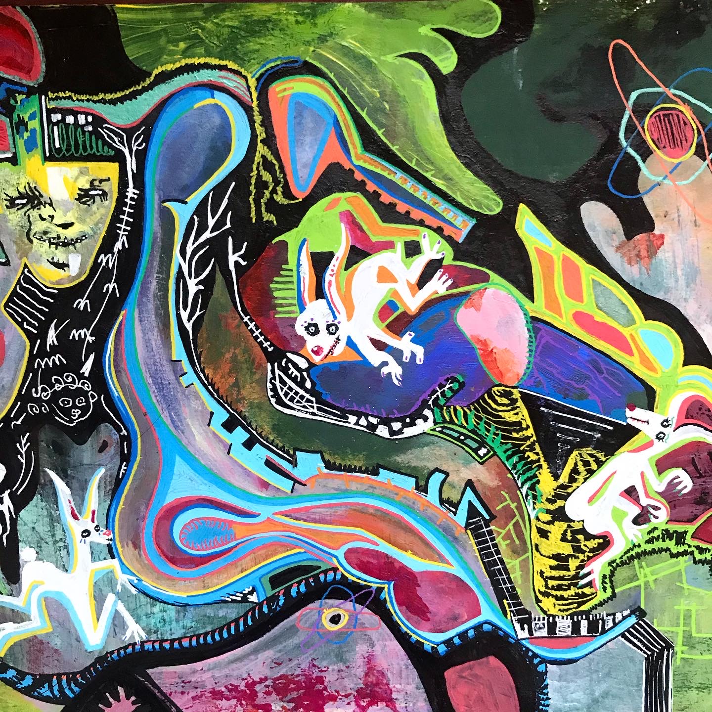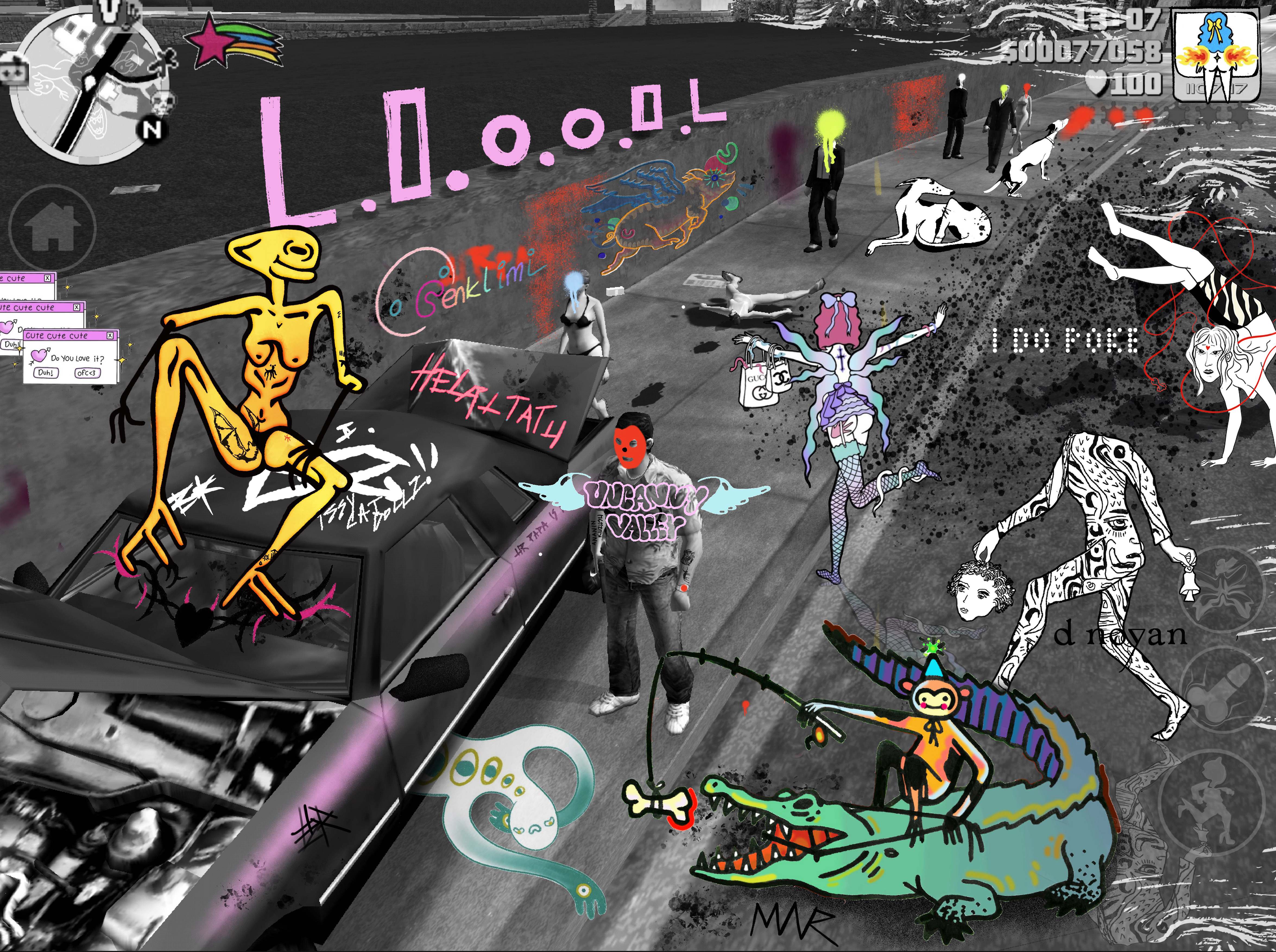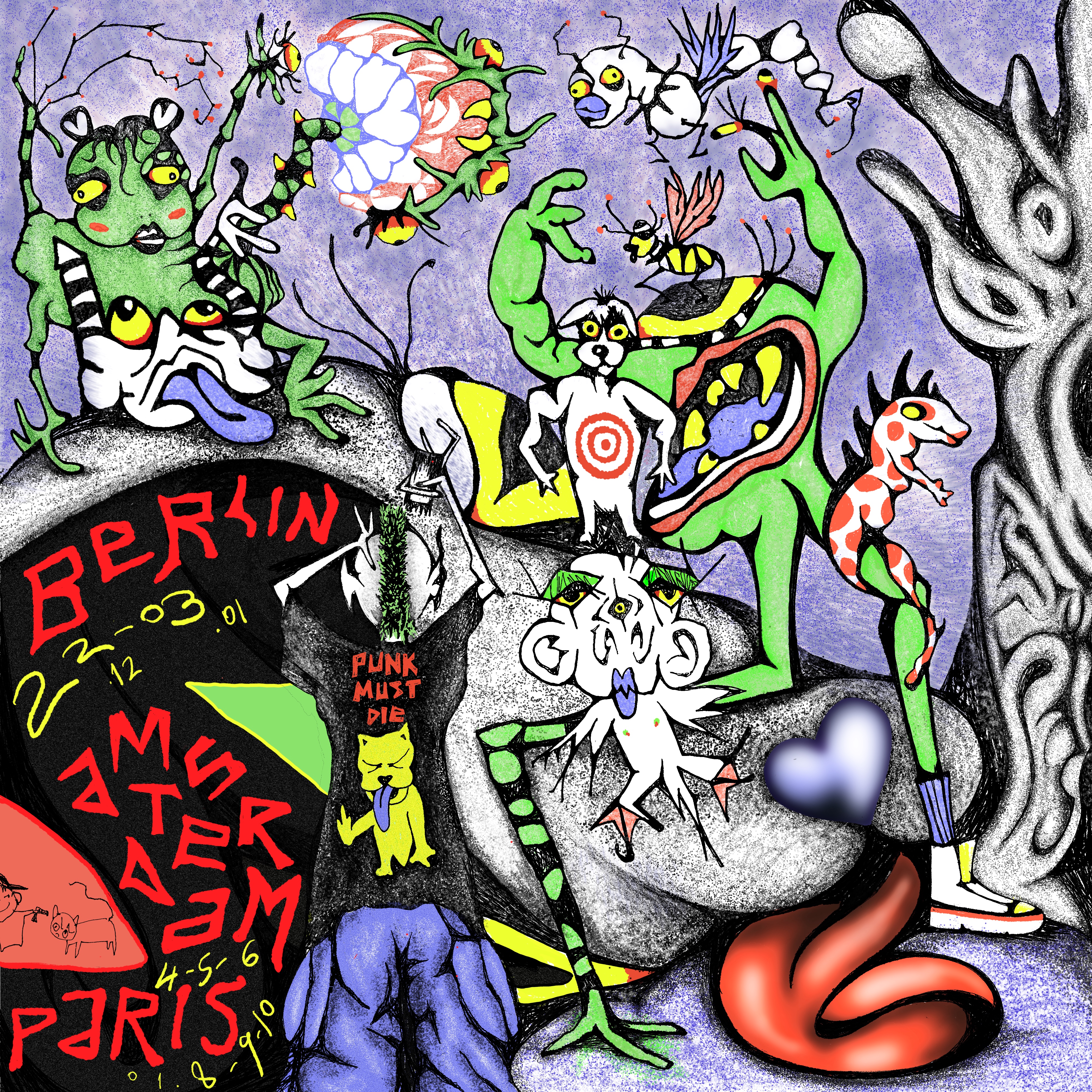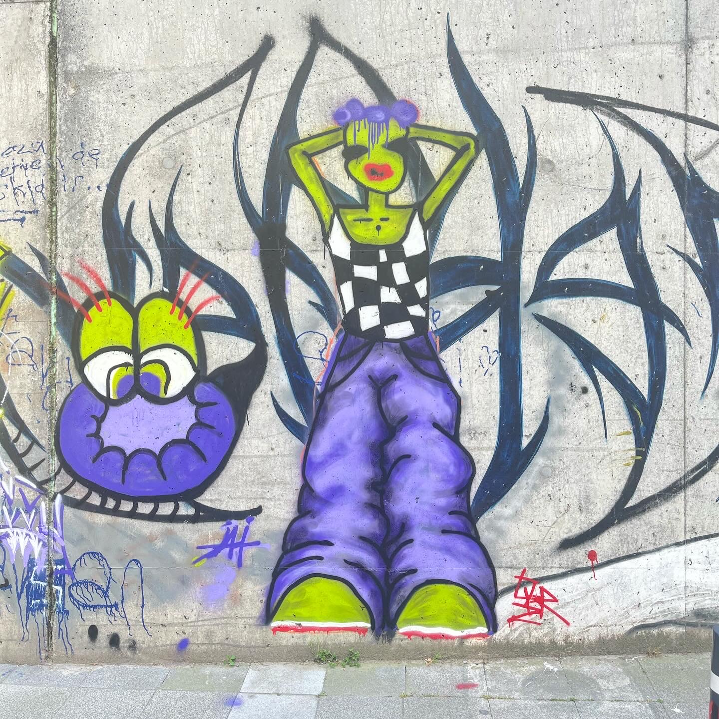 My main hexing items are ink & paint, needles, brushes & spraycans, fruits, veggies, garbage, toys, things&things+morethings, silicongun, on various surfaces. I like my screens, hanging out in the digital land, AI hold my hand. I create visuals, do handpoke tattoos, paint street walls, write essays, fables, and creepy poems. I like to play with random found objects, tear them apart and reconstruct them into toylike creatures with an additional layer of buzz.