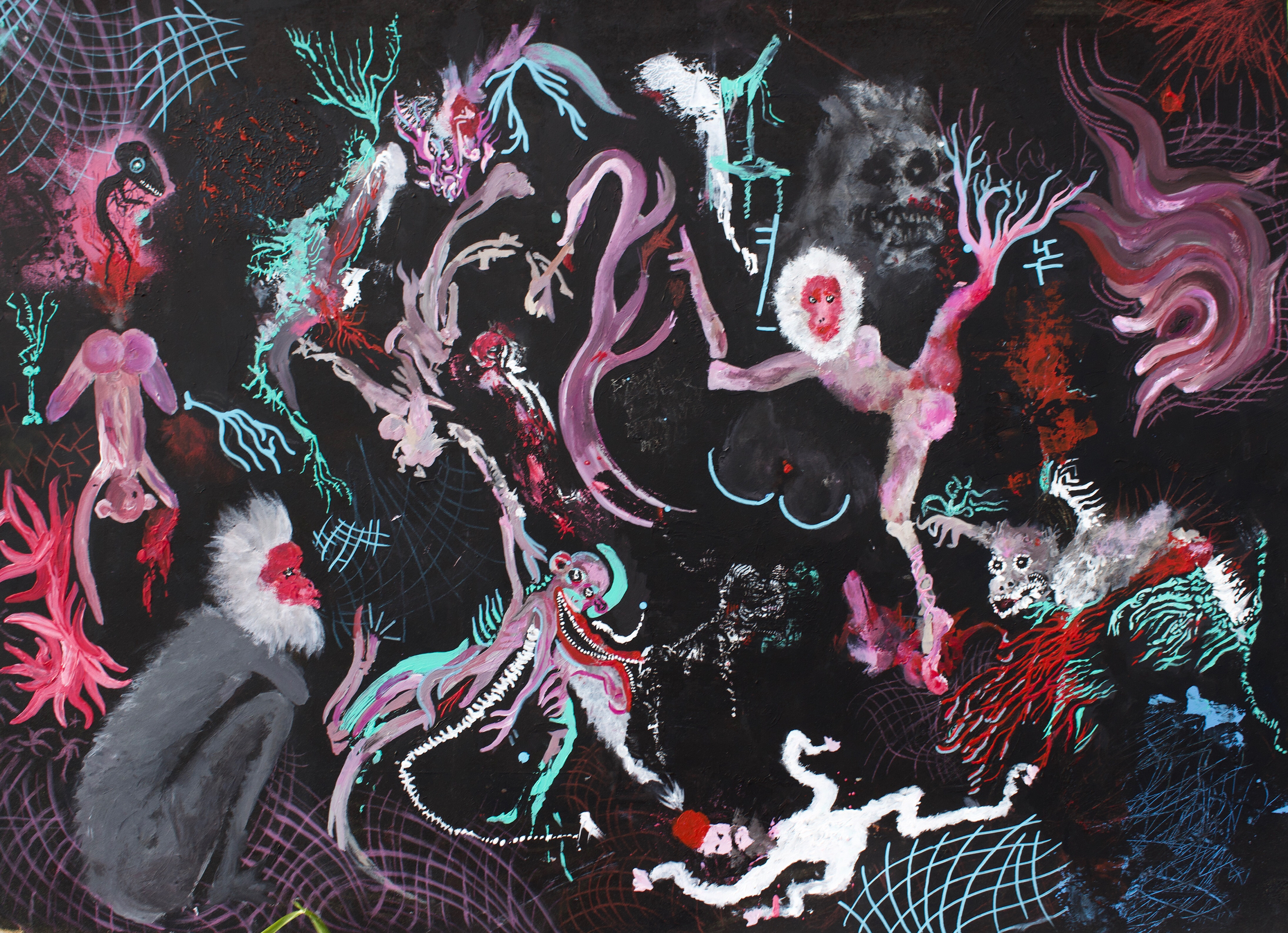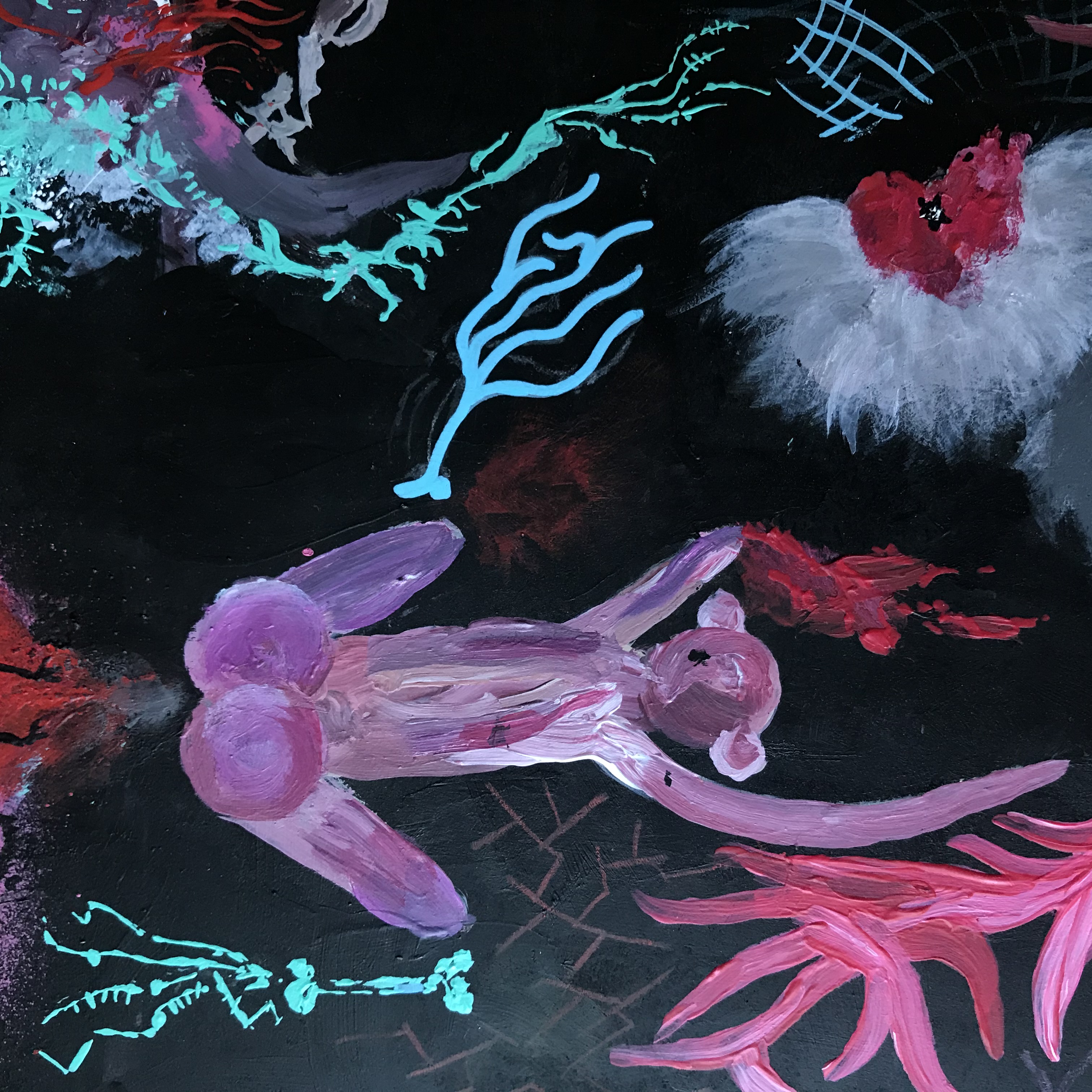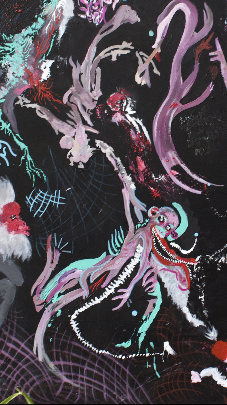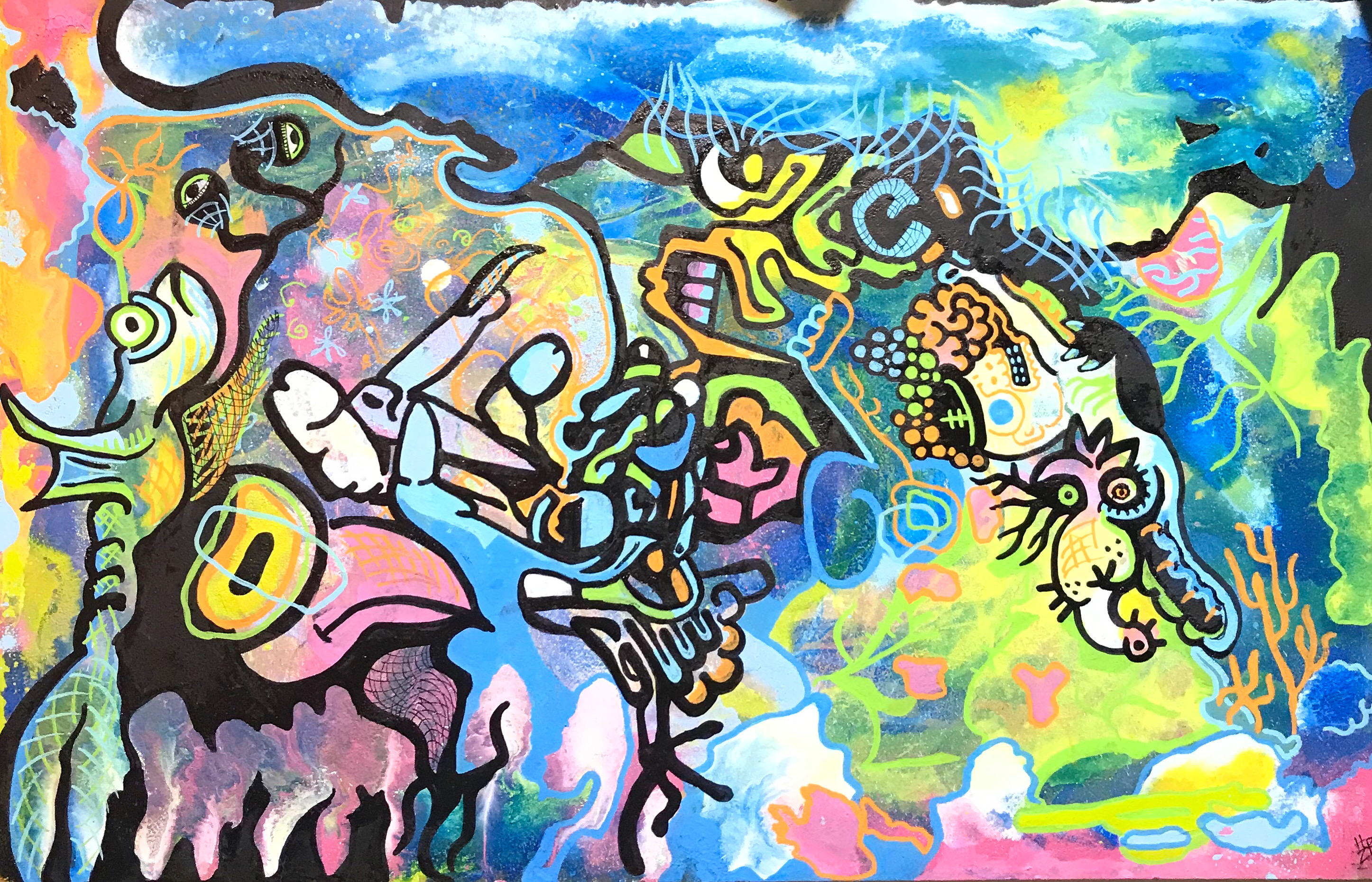 My main hexing items are ink & paint, needles, brushes & spraycans, fruits, veggies, garbage, toys, things&things+morethings, silicongun, on various surfaces. I like my screens, hanging out in the digital land, AI hold my hand. I create visuals, do handpoke tattoos, paint street walls, write essays, fables, and creepy poems. I like to play with random found objects, tear them apart and reconstruct them into toylike creatures with an additional layer of buzz.
